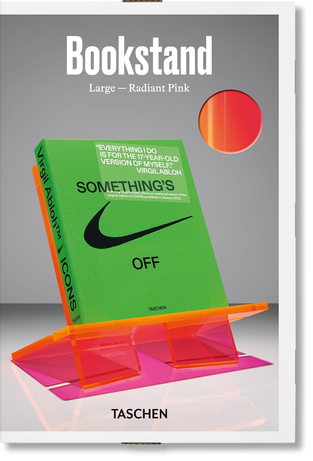 Orta, büyük ve ekstra büyük olmak üzere üç farklı boy seçeneği, devasa SUMO'larımız hariç, neredeyse tüm kitap yelpazemizin güvenli ve şık bir şekilde sergilenmesini sağlar . Ayrıca, edisyonlarımızdaki çeşitliliği yansıtan dört göz alıcı renk - su mavisi, parlak pembe, kristal yeşili ve şehir grisi - ve şeffaf bir versiyon, TASCHEN'in büyük, parlak ve iddialı arka kataloğunu sergilemek için uygun bir temel sağlar.
